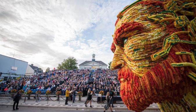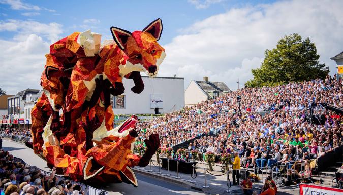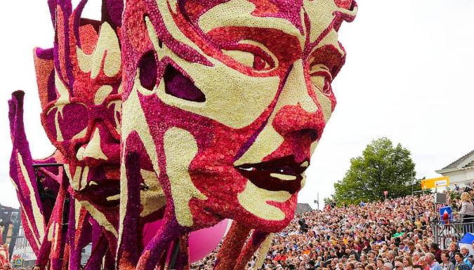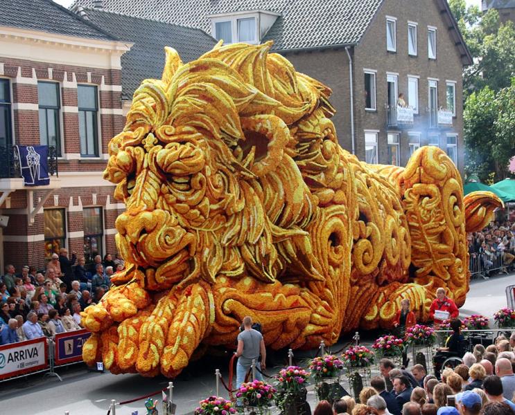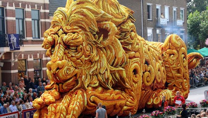 20 городских районов соревнуются между собой в создании лучшей цветочной скульптуры. Для изготовления скульптур используют тысячи георгин, выращенных специально для парада. А подготовка к такому масштабному действию начинается еще с мая. Местные жители так любят этот парад, что добровольно работают сутки напролет над созданием грандиозных и красочных скульптур.