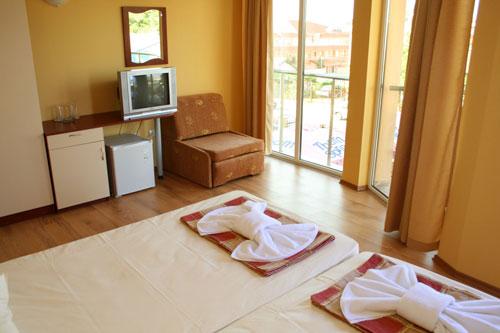 - На территории отеля работает ресторан, где подают блюда болгарской и средиземноморской кухни