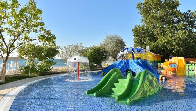 Отель расположен в курортном комплексе Золотые Пески, в 30 км от аэропорта города Варна, в 1,5 км от центра курорта и в 10 м от пляжа.