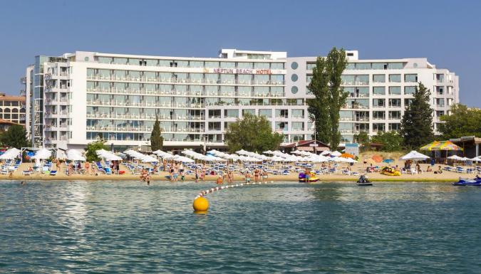 Отель Neptun Beach удобно расположен на берегу моря, в центре курорта Солнечный берег, в нескольких метрах от песчаного пляжа. Среди гостей отеля много европейцев.