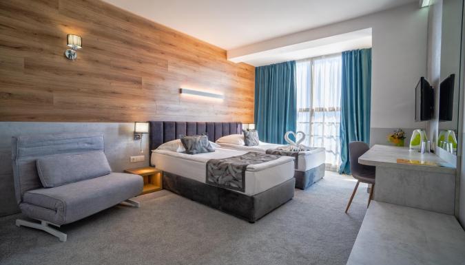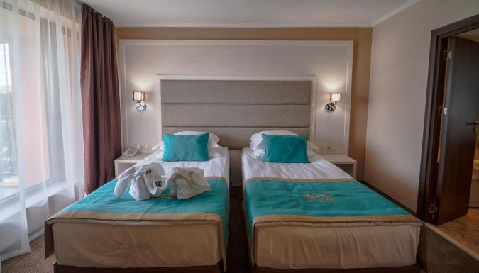 Отель расположен в курортном комплексе Золотые Пески, в 25 км от аэропорта города Варна, в 400 м от центра курорта и в 400 м от пляжа.