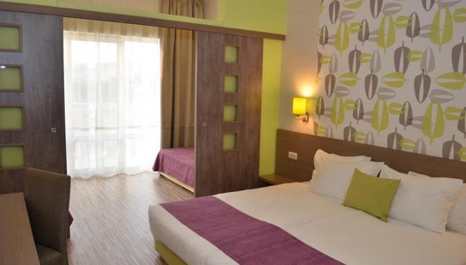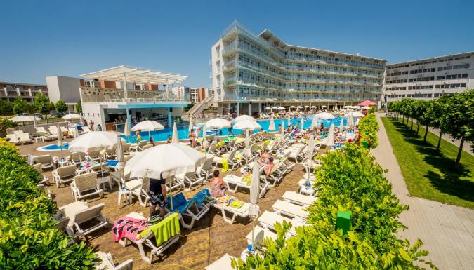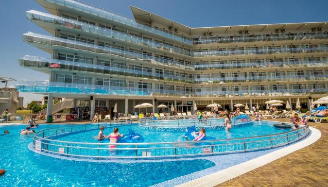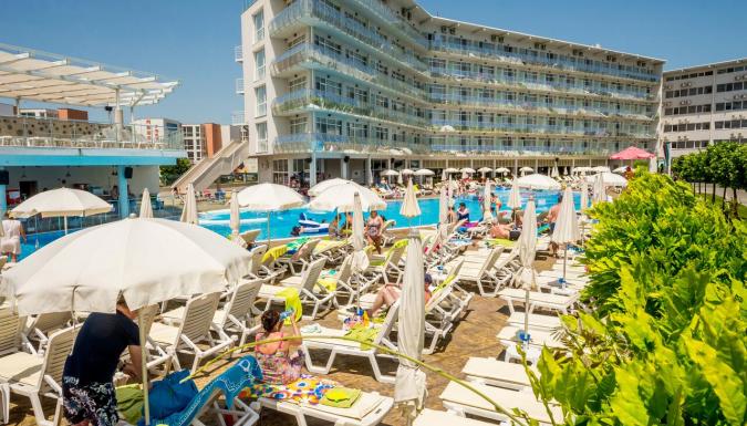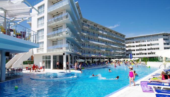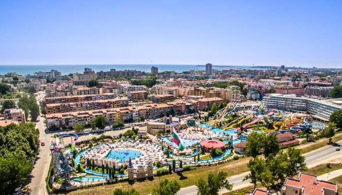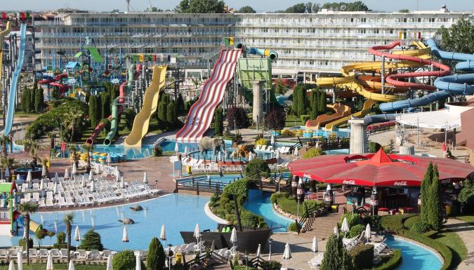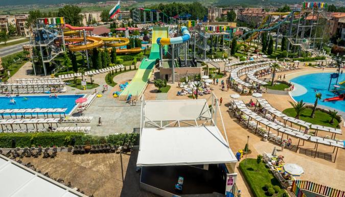 Отель Aqua Nevis & Aqua Park - All Inclusive расположен на курорте Солнечный берег, менее чем в 1 км от курорта Солнечный берег.