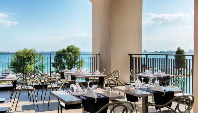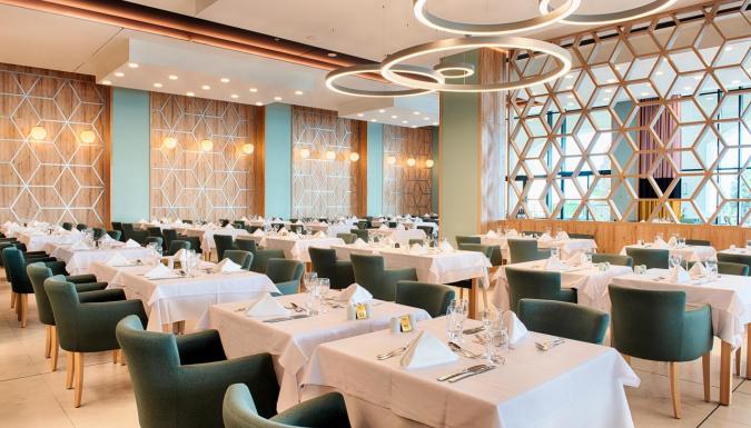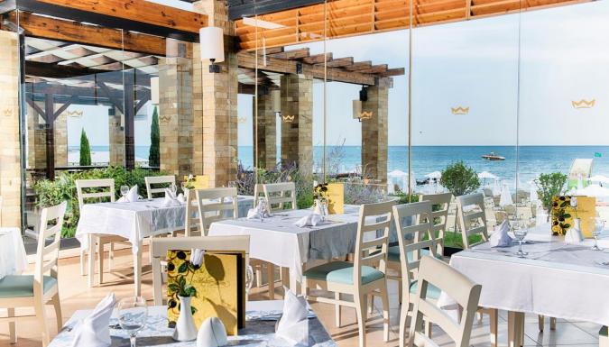 рестораны: 4 (основной с открытой террасой, на ужин – дресс код; 3 тематических ресторана: Krystal с кухней фьюжн, ресторан средиземноморской кухни, ресторан-закусочная/ Стейк-хаус)