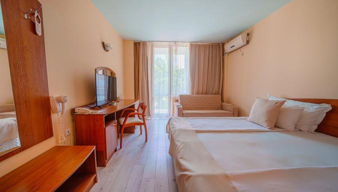 Отель Perla Plaza удобно расположен на пляже, всего в 40 метрах от Черного моря.