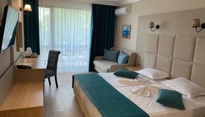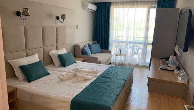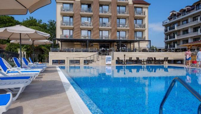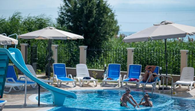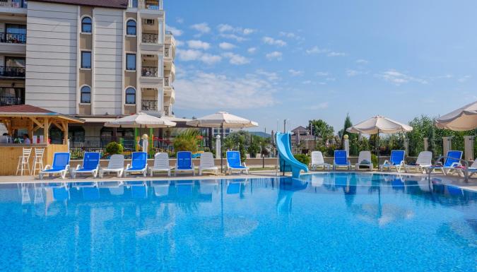 Отель в 40 км от аэропорта города Варна, в 144 км от аэропорта города Бургас, в 2 км от центра поселка и в 70 м от пляжа.