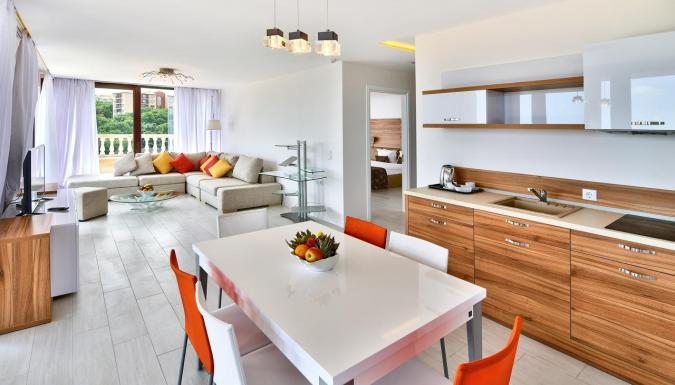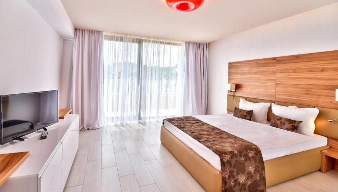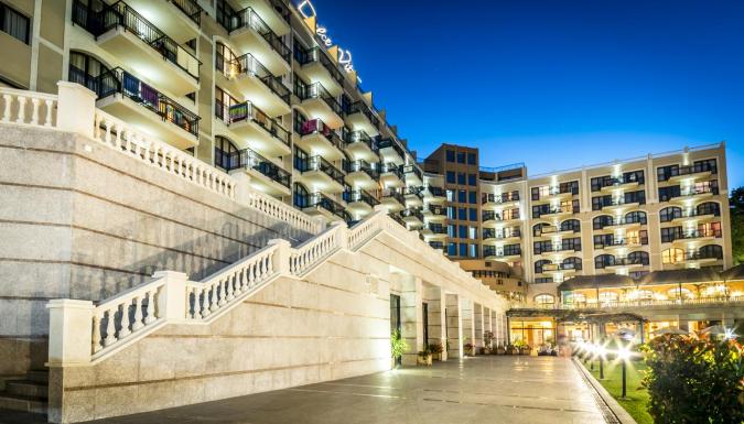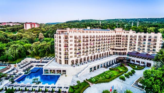 Курортный отель lti Dolce Vita Sunshine All Inclusive Aquapark & Beach с открытым и крытым бассейнами расположен на курорте Золотые Пески, посреди живописной лесной зоны.