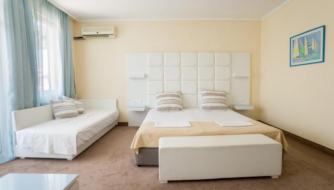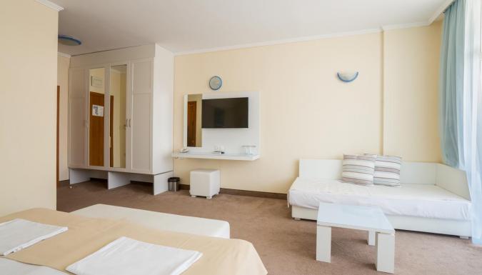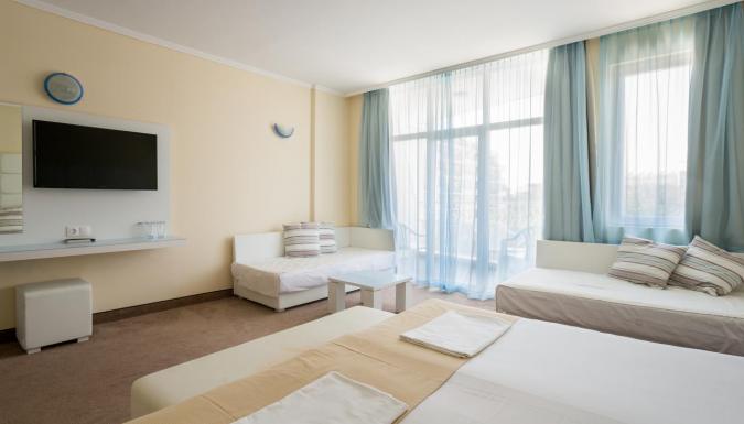 Отель в Приморско стоит на самом берегу моря. В отеле обновленные просторные номера, где приятно и удобно отдыхать всей семьей. В ресторане предлагают сбалансированное меню с блюдами, подходящими для детского рациона.