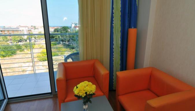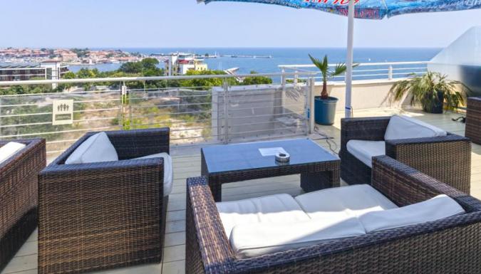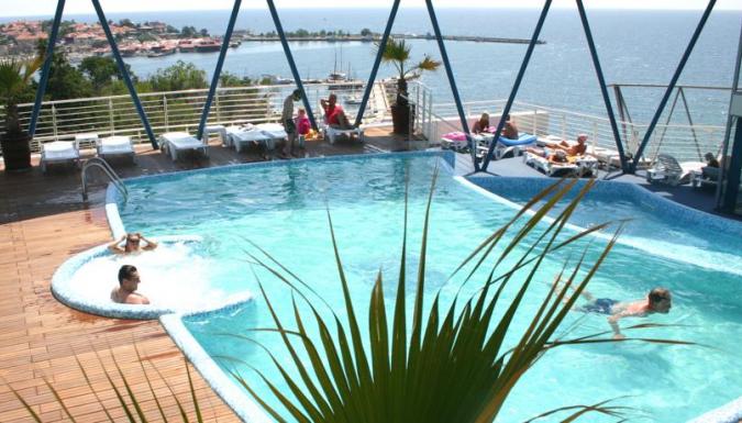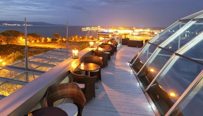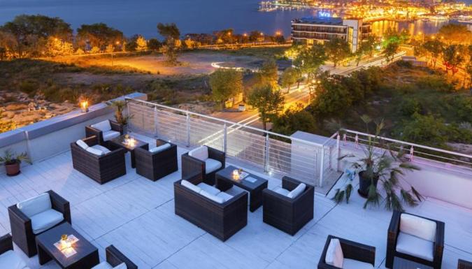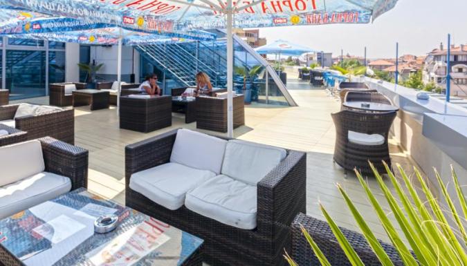 ресторан на 96 мест в основном зале и на 24 места в зале, свободном от курения, с открытой террасой предлагает богатый выбор традиционных и экзотических блюд; кафе-бистро предлагает большой выбор лёгких блюд, закусок, прохладительных напитков; бар Sky Bar с панорамным видом на Старый Несебр и Солнечный берег предлагает разнообразные вина, коктейли, прохладительные напитки; бар в холле отеля предлагает пирожные, конфеты, мороженое, разнообразные напитки и экзотические коктейли.