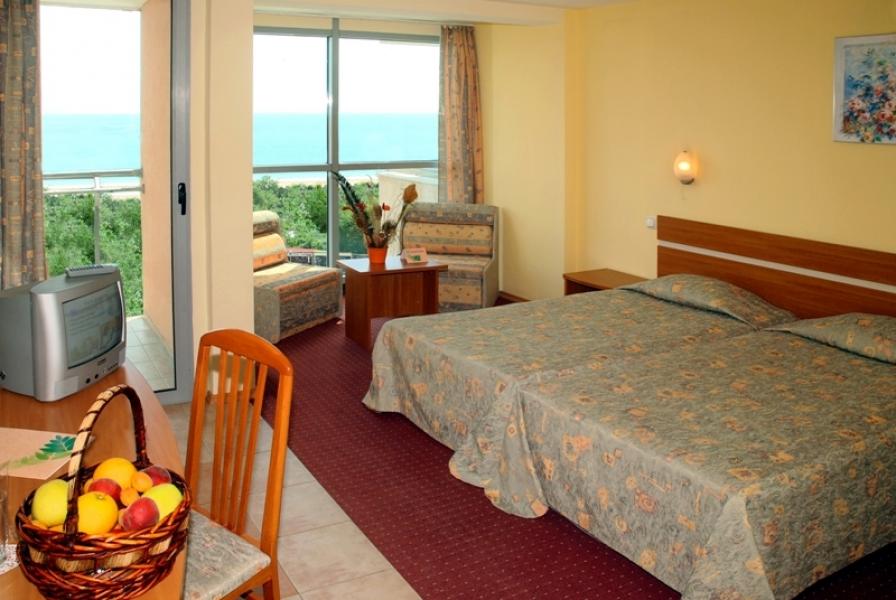 Отель выгодно расположен: в самом туристическом сердце курорта Золотые пески. Морской берег и вечерние взрослые развлечения в нескольких минутах неспешной ходьбы.