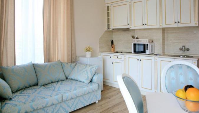 Кухня, холодильник, LCD телевизор с кабельным телевидением, кондиционер, утюг и гладильная доска, беспроводной доступ в Интернет.