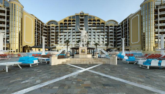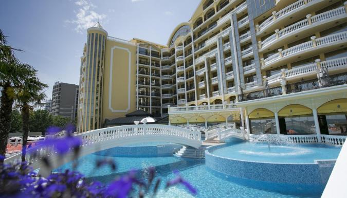 Расположен в северной части курорта Солнечный берег. Пляж находится через пешеходную набережную. Новый тип номера - DBL Superior (полностью отремонтированные номера) доступны - ТОЛЬКО на базе UAI. UAI включает в себя размещение DBL Superior, питание в отдельном ресторане и лежаки и зонтики на пляже при наличии свободных мест. Для туристов на ALL лежаки и зонтики на пляже платные!