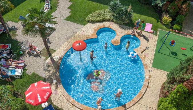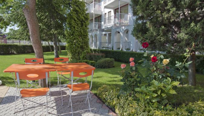 Очень хорошее питание (отель работает по системе питания All Inclusive). Светлые, аккуратные номера. Большая приятная зелёная территория с открытым бассейном, есть и крытый бассейн, детский лягушатник. Хочется добавить, что для детей работает хорошая команда аниматоров, есть большая детская комната. В ресторане предоставляются детские стульчики. Есть игровые площадки. В отеле приветливый персонал, аниматоры также молодцы, стараются развлекать гостей.