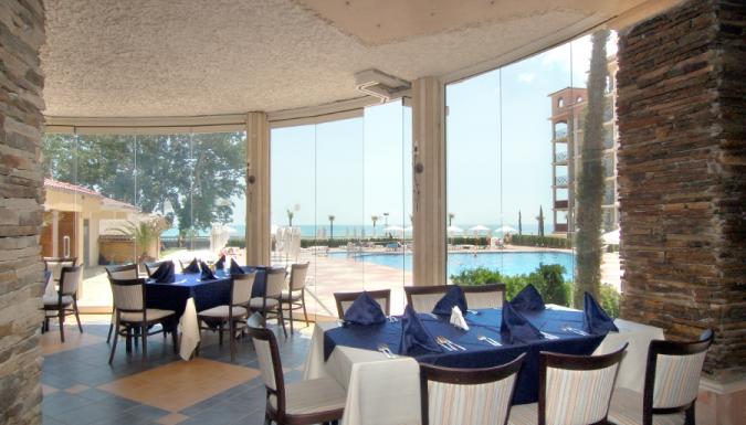 Элегантный холл с рецепцией. На рецепции есть сейф. Рестораны, питание: лобби-бар, ресторан. В пакет «All inclusive» включено: - завтрак, обед и ужин (шведский столе), - закуски (11-17:00), - кофе/ чай/ мороженое и т.п. (11-22:00). - алкогольные и безалкогольные напитки местного производства (10:30-24:00). Прочие услуги: магазин, обмен валют, интернет-кафе, медицинский центр. Спорт, здоровье и развлечения: открытый бассейн (шезлонги и зонтики бесплатно), детский бассейн, салон красоты, пляжный волейбол, настольный теннис, тир, аэробика, гимнастика, фитнес, водное поло, массаж, парная, аквапарк Atlantida, клуб верховой езды, теннисные корты, мини-гольф, СПА, индонезийский массаж, турецкая баня, сауна. На пляже: клуб серфинга, водные лыжи, парашютный спорт. Развлечения: дартс, уроки болгарского языка, вечерние шоу-программы, анимация днем, художественная галерея, амфитеатр. Для деловых людей: вертолетная площадка, электромобили (бесплатно). Для детей: детская анимация, детская площадка, детский сад.