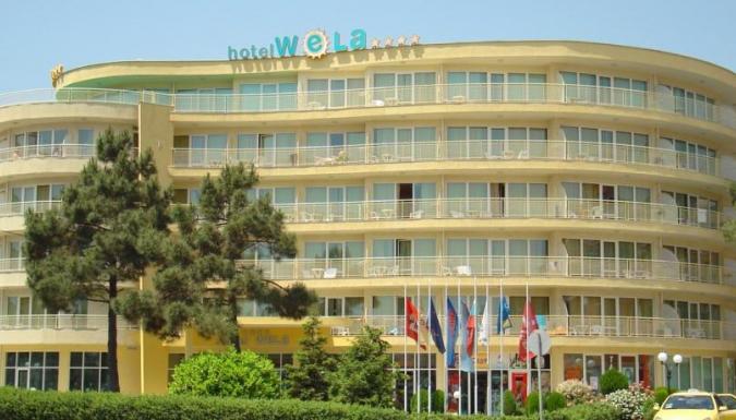 Отель Wela построен в 2004 году, и расположен в северной части курорта Солнечный берег, в 250 м от пляжа и в 1 км от центра курорта. В здании 5 этажей, есть лифты. Тип питания - ВВ (шведский стол или континентальный). В отеле два бара - лобби-бар и ночной бар. Ещё один бар есть у бассейна. В ресторане имеется терраса, для детей есть высокие стулья. Для посещения ресторана необходима элегантная одежда. На территории отеля есть открытый бассейн и отдельный детский бассейн. В бассейне - минеральная вода. У бассейна есть шезлонги и зонтики. Для ухода за собой и оздоровления можно воспользоваться гидромассажем, джакузи, посетить СПА-центр (бальнеологические процедуры, сауна, баня, массаж) или фитнес-центр. Есть также парикмахерская и студия маникюра. На крыше отеля есть терраса с шезлонгами для принятия солнечных ванн. Из развлечений и спортивных занятий доступны бильярд, настольный теннис (платно), площадки для воллейбола и футбола, бадминтон (платно), есть прокат велосипедов. Для детей предусмотрена детская площадка, игровая комната. Прочие услуги: холл, круглосуточная рецепция, сейф, автобусная остановка рядом, супермаркет, химчистка, обмен валюты, медицинский кабинет, интернет-кафе (платно), прачечная, охраняемая парковка. В отеле есть 5 номеров, предусмотренных для инвалидов. Check-In / Check-Out - круглосуточно.