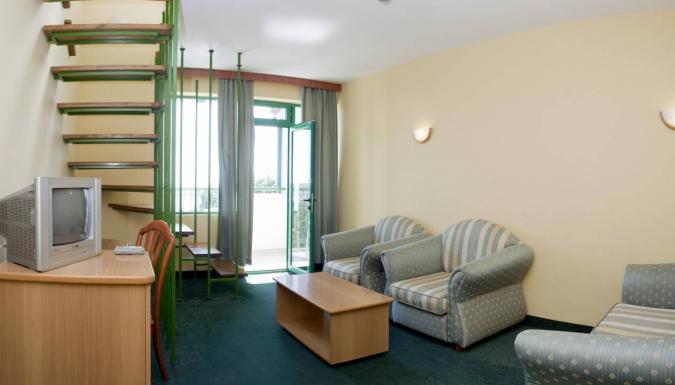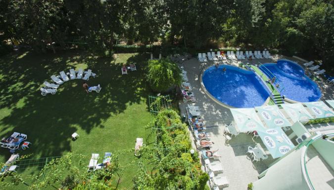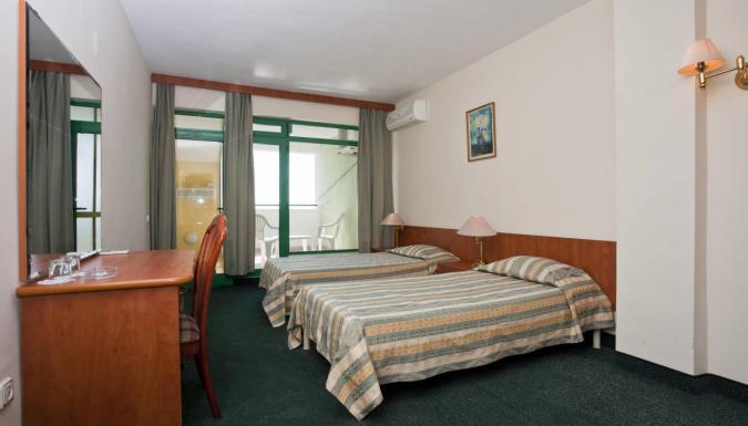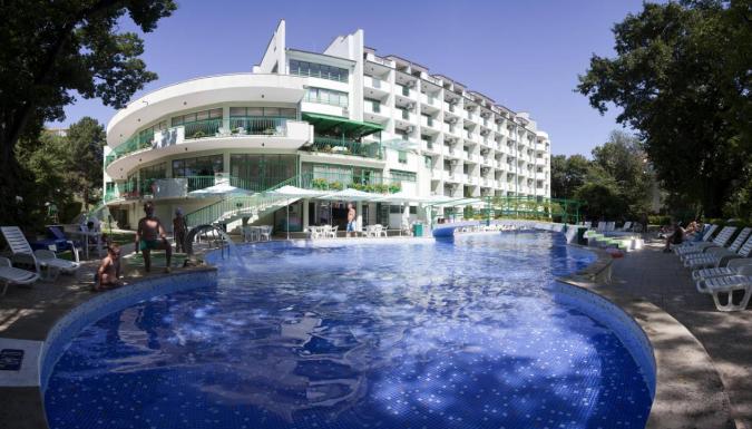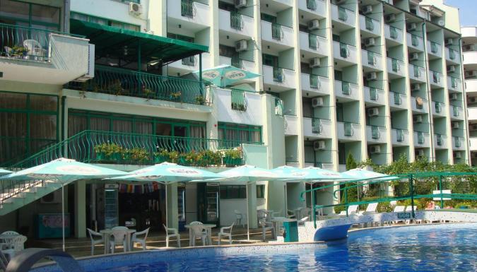 Недавно отремонтированный 6-тиэтажный отель, расположен в северной части курорта Золотые пески, в нем имеется: обмен валюты, парковка авто, прокат авто, холл, телефон, факс, лифт, магазин, сейф, ресторан, бар, столовая, открытый бассейн, сауна, фитнес-центр, тренажерный зал, теннисный корт, сад (парк), экскурсии, анимация.