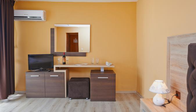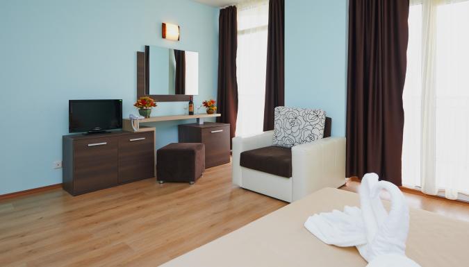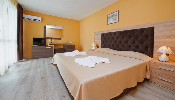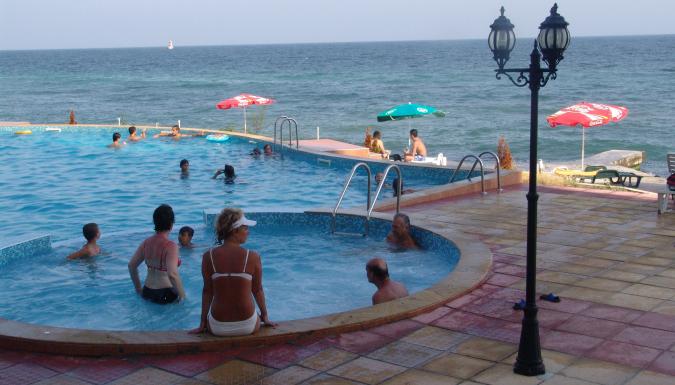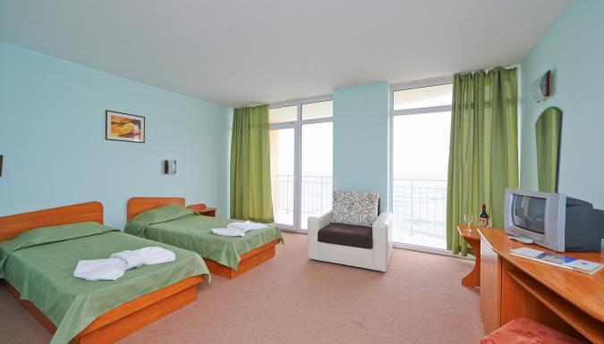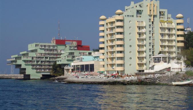 «Pomorie Beach», построенного в 2003 г. В отеле работают основной ресторан с террасой над морем, открытый ресторан над морем, банкетный зал «Калиопа», кафе-кондитерская, лобби-бар. Спорт и развлечения: два бассейна: открытый на берегу моря и закрытый (25 м), детский бассейн, джакузи, фитнес-центр, водные виды спорта на пляже (водные лыжи, серфинг), ночной клуб. Здоровье: SPA-центр (лечебные программы: кинезитерапия, криотерапия, физиотерапия, прессотерапия, талассотерапия, подводная гимнастика, дыхательная гимнастика, электротерапия, УЗИ и УКВ терапия; SPA-программы — «Похудение», «Антистресс», ароматерапия), бальнеология, грязелечение (обертывания, аппликации), различные виды массажей, сауна, солярий, салон красоты. К услугам деловых людей конференц-зал на 50 мест. Прочие услуги: магазины, сейф на рецепции, обмен валюты, обслуживание в номерах, парковка, лифты. Зонтики и шезлонги у бассейна и на пляже — за дополнительную плату.