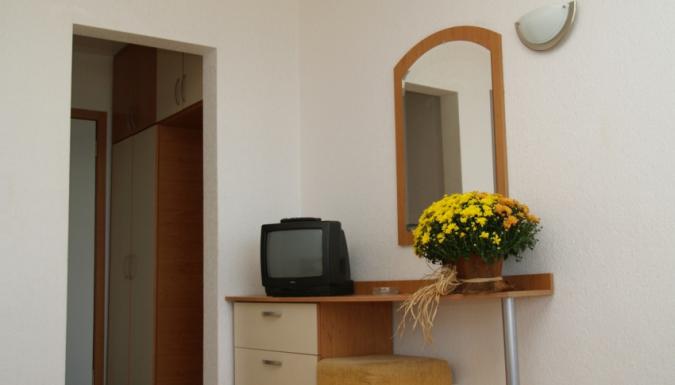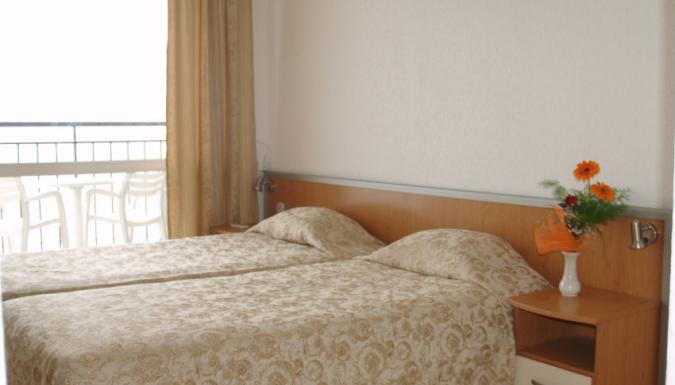 Две кровати, санитарный узел с душем, балкон.Wi-Fi предоставляется в номерах отеля по цене EUR 5 в сутки.