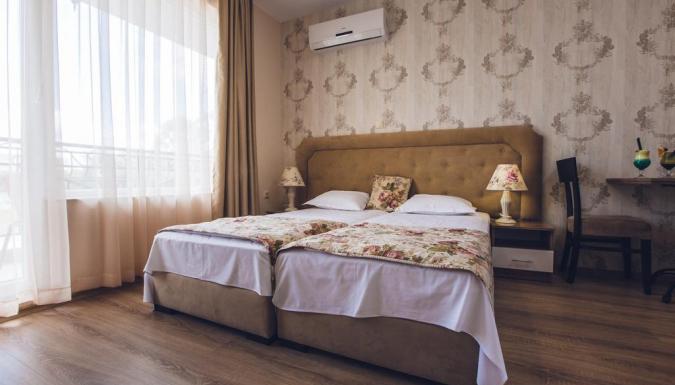 - оборудованные двуспальной или 2 односпальными кроватями в спальной комнате апартаменты, состоящие из гостиной с диваном и односпальной кроватью.