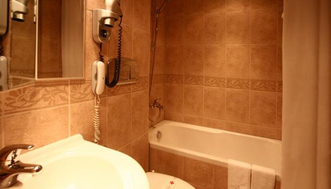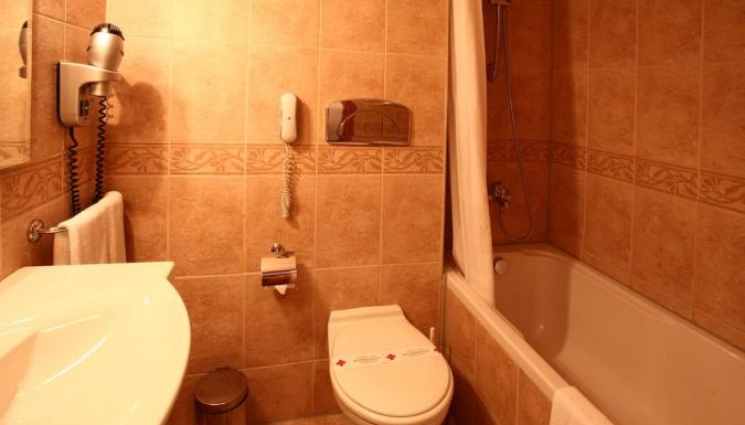 В ванной комнате имеется ванна и туалетно-кометические принадлежности.