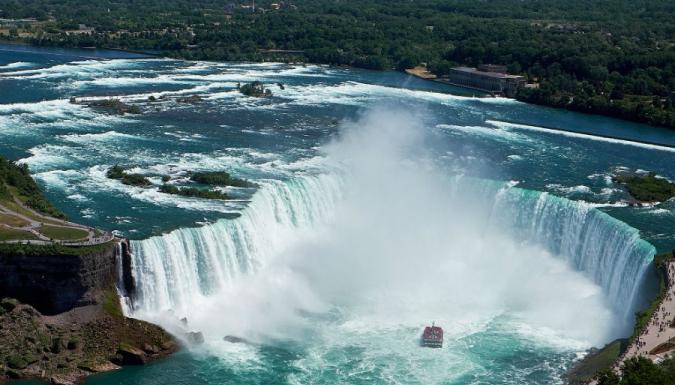 Ниагарский водопад - самый известный водопад в мире, который ежегодно посещают десятки миллионов человек. Он расположен на территории двух штатов: США (штат Нью-Йорк) и Канады (провинция Онтарио), на реке Ниагара, протекающей между озерами Эри и Онтарио. Его название происходит от ирокезского слова «Онгуиахра», что означает «водяной гром». Ниагарский водопад состоит из трех водопадов: Американского водопада, водопада «Фата невесты» и водопада «Подкова». - 6