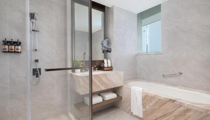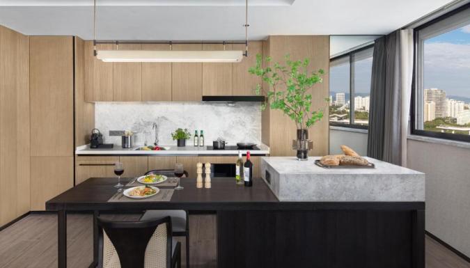 Среди удобств Ascott Dadonghai Bay Sanya — телевизор с плоским экраном и собственная ванная комната с бесплатными туалетно-косметическими принадлежностями, феном и душем. Также есть холодильник, кофемашина и чайник.