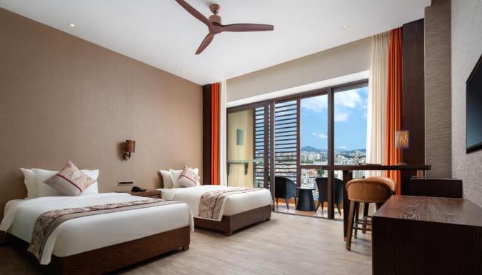 До курортного отеля Mangrove Tree World Sanya Bay-. Отель King and Qeen Palm Towers находится буквально в двух шагах от центра города, в 2,5 км от железнодорожного вокзала Саньи и в 9,8 км от международного аэропорта Феникс.