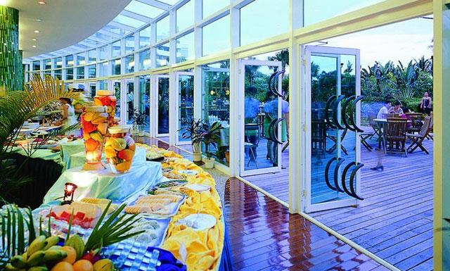 Green Garden Cafe — ресторан европейской кухни на открытом воздухе, расположен у бассейна, завтрак «шведский стол», обед и ужин по меню, открыт с 07:00 до 01:00 ночи; Oceanic Chinese Restaurant — ресторан китайской кухни высокого класса, имеет общий зал и 10 VIP-кабинетов с видом на море; Euros Steak House — ресторан европейской кухни, ужин с 18:00 до 20:00; Lakeside BBQ buffet — ресторан барбекю, ужин «шведский стол», живая музыка, с 18:30 до 22:00; Poolside Bar — бар у бассейна, открыт с 09:00 до 20:00; Silver Beach Bar — бар на пляже, открыт с 09:00 до 20:00; Lobby Lounge — бар в лобби отеля, открыт с 09:00 до 24:00.