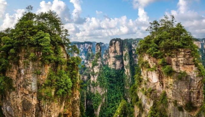 Подъем на лифте «100 драконов». Выход на панорамную площадку. Панорамные виды на горы. Гора Цзянькуньджу (Южный Небесный Столб). Посещение самого большого в мире естественного моста между скалами.