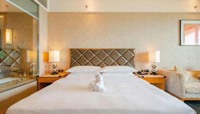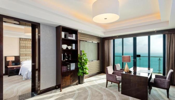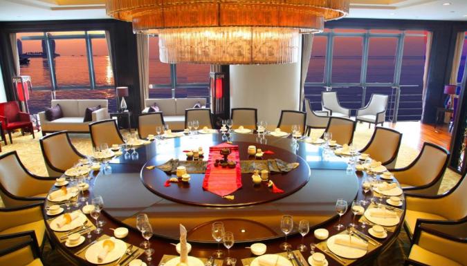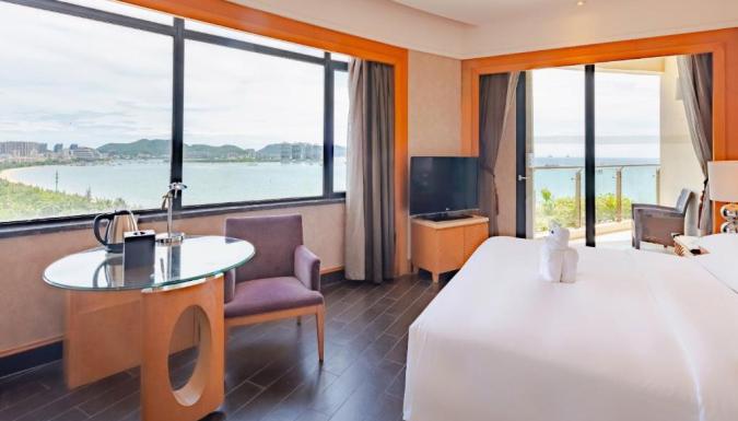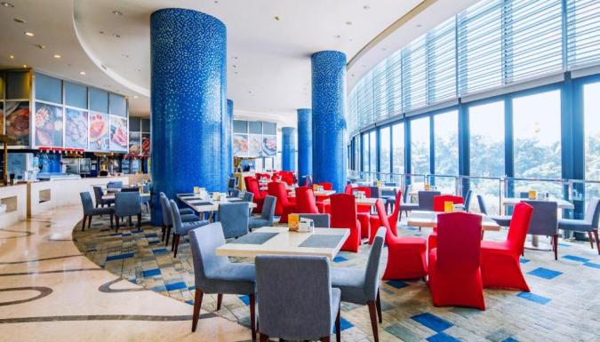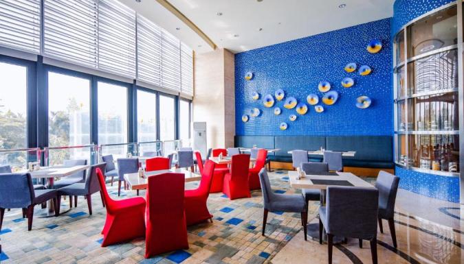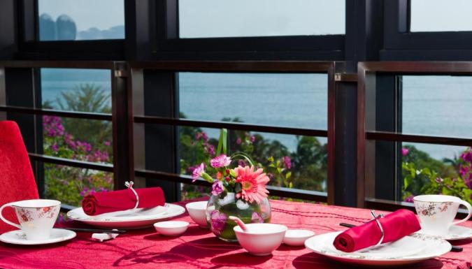 В ресторанах отеля можно отведать блюда китайской и западной кухни. Гости могут насладиться освежающими напитками в баре с прекрасным видом на море.