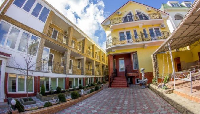 Отель В Камелот расположен в живописной местности вблизи центральной улицы Судака, всего в семи минутах ходьбы от популярной среди отдыхающих Кипарисовой аллеи, каскадом спускающейся к морю. Уютный двор с ландшафтным дизайном в итальянском стиле располагает к уютному вечернему отдыху после дня, проведенного на пляже. На территории пансионата охраняемая парковка. Собственная столовая с блюдами европейской кухни, возможность заказа еды в номер. Сам пансионат находится на возвышенности. С террас и окон открываются роскошные панорамы на Черное море и горы, виднеющиеся вдали.