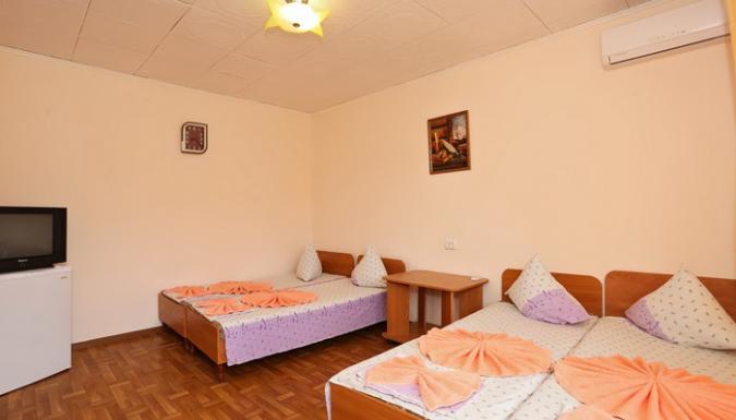 Номера оформлены в строгом стиле и оснащены телевизором и шкафом. Все номера располагают террасой.