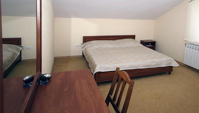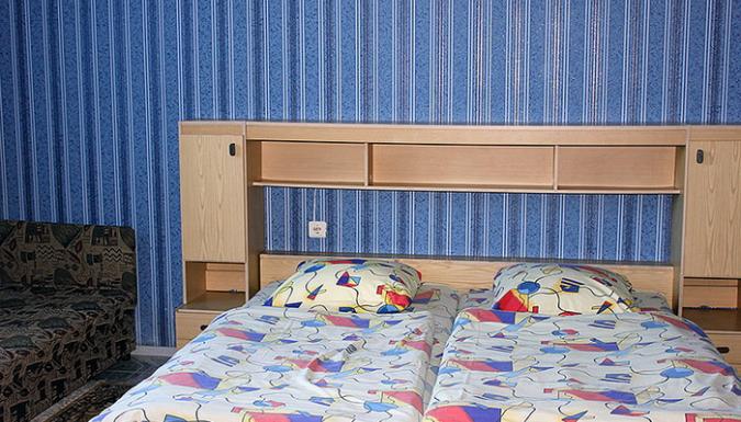 4-местный номер улучшенный (однокомнатный или двухкомнатный) (19-29 кв.м):душ, туалет, умывальник, телевизор, холодильник, кондиционер, двуспальная кровать, двухъярусная кровать либо раскладной диван,шкаф для одежды, зеркало, вешалка, тумбочка, эл. чайник, обеденный стол с минимальным набором посуды, wi-fi. Максимальное размещение: 4 осн+1 доп.место