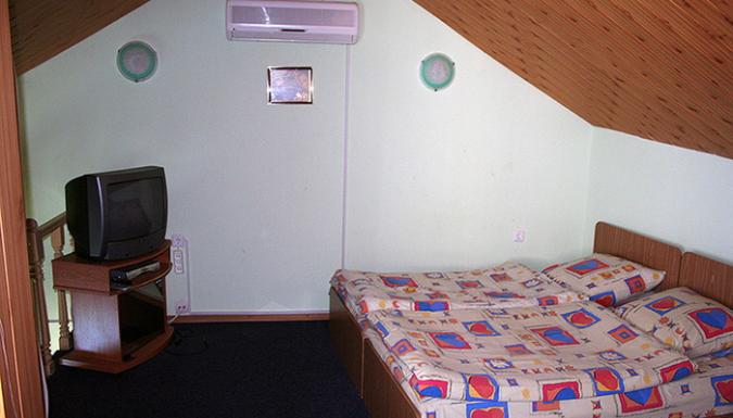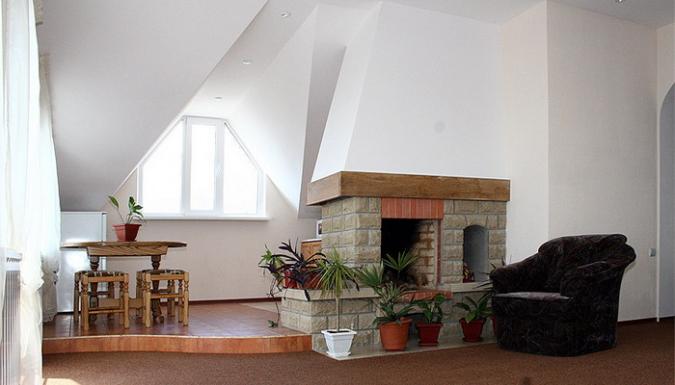 4-местный 2-х уровневый номер улучшенный (дуплекс) с балконом (36 кв.м):1 этаж: санузел (душ, туалет, умывальник), телевизор, холодильник, кондиционер, шкаф для одежды, зеркало, тумбочка, эл. чайник, микроволновая печь, обеденный стол с минимальным набором посуды.Выход на большой балкон, где стоит газовая печка.2 этаж: двуспальная кровать, две односпальные кровати, wi-fi. Балкон. Максимальное размещение: 4 осн+1 доп.место