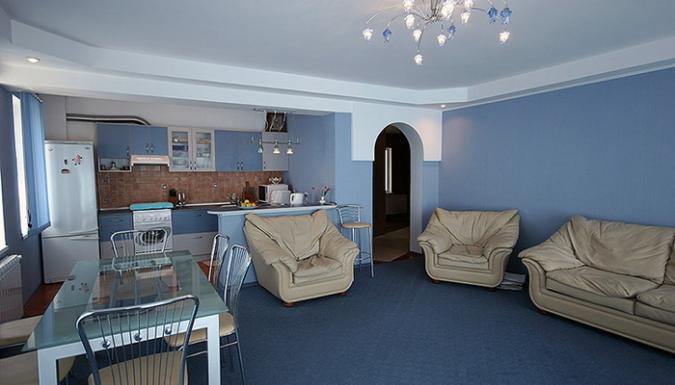 3-комнатные апартаменты (90 кв.м):номер состоит из 2-х спален, гостиной, санузла. Санузел: душ, туалет, умывальник. В каждой спальне стоит двуспальная кровать. В гостиной: телевизор, холодильник, кондиционер, кухня с полным набором посуды, wi-fi. Максимальное размещение до 6 человек.