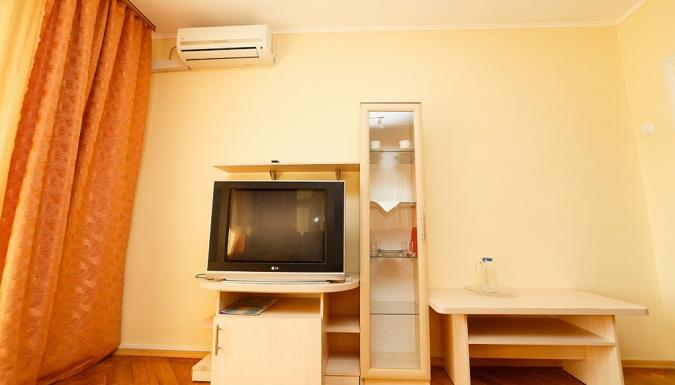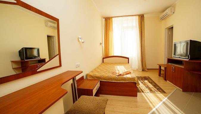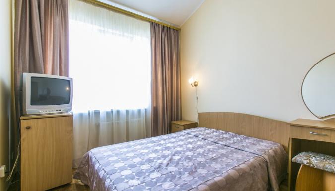 1-местный 1-комнатный номер (макс. 1 чел., 14 кв. м, телевизор, кондиционер, ванна, холодильник, 1-спальная кровать, туалет, номера расположены на 3 и 4 этажах лечебного корпуса).