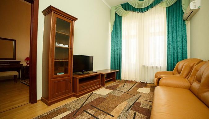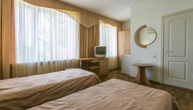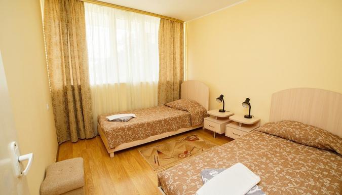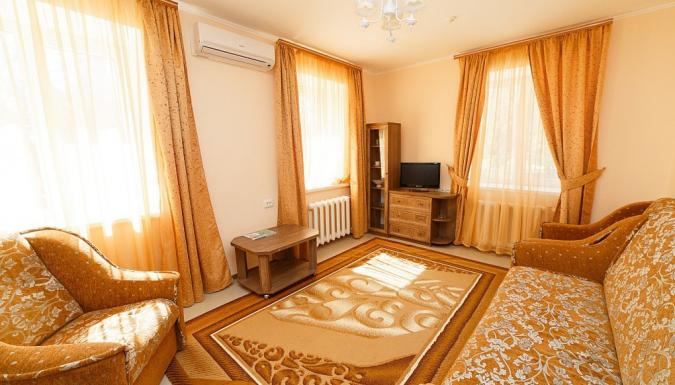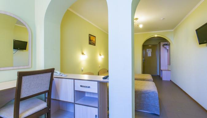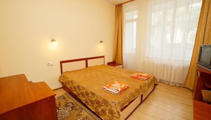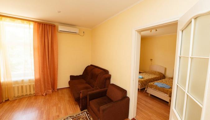 2-местный 2-комнатный номер (макс. 2+2 чел., 24-28 кв. м, телевизор, кондиционер, ванна, холодильник, туалет, номера расположены на 3 и 4 этажах лечебного корпуса). Доп. место - диван, предоставляется без ограничения по возрасту.