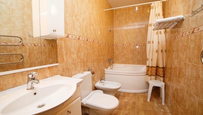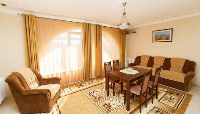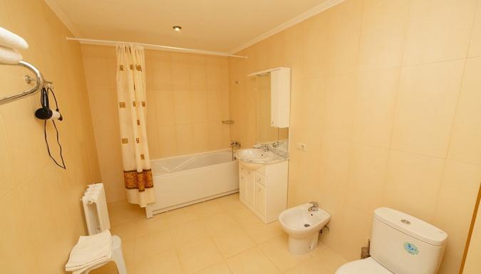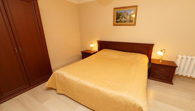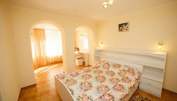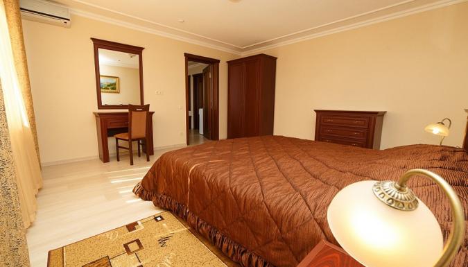 2-местный 3-комнатный люкс (макс. 2+2 чел., 45 кв. м, телевизор, ванна, биде, холодильник, лоджия, 2-спальная кровать, туалет). Доп. место - диван, может быть предоставлен без ограничения по возрасту.