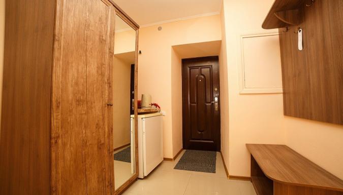 2-местный 2-комнатный люкс (макс. 2+2 чел., 26-28 кв. м, телевизор, кондиционер, ванна, холодильник, лоджия, телефон, 2-спальная кровать, туалет). Доп. место - диван, может быть предоставлен без ограничения по возрасту.