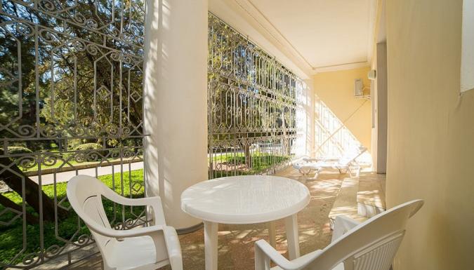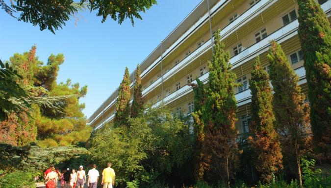 2-этажный корпус находится в глубине парка-памятника садово-паркового искусства, в 200 метрах от моря.
