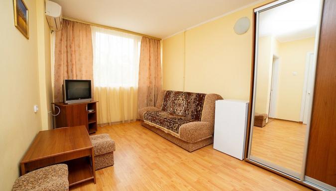 2-местный 1-комнатный номер (макс. 2+1 чел., телевизор, кондиционер, ванна, холодильник, лоджия, 2-спальная кровать, туалет). Доп. место - кресло-кровать, может быть предоставлена для ребенка до 14 лет.