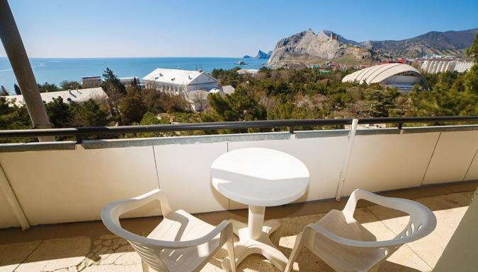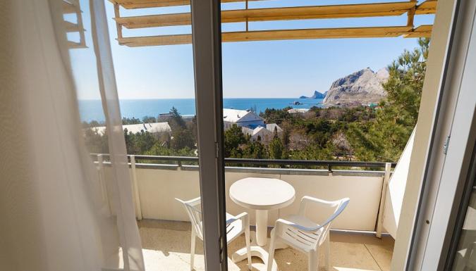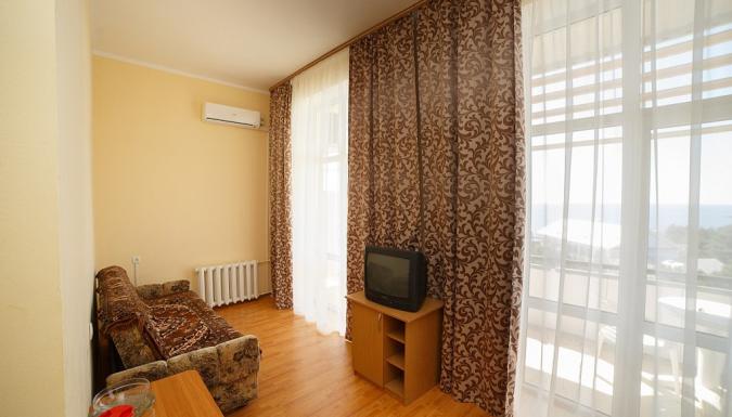 2-местный 2-комнатный южный (макс. 2+2 чел., 24-26 кв. м, телевизор, кондиционер, душ/ванна, холодильник, балкон, 1-спальные кровати, туалет, вид на Судакскую бухту и Генуэзскую крепость). Доп. место - диван, может быть предоставлен без ограничения по возрасту.
