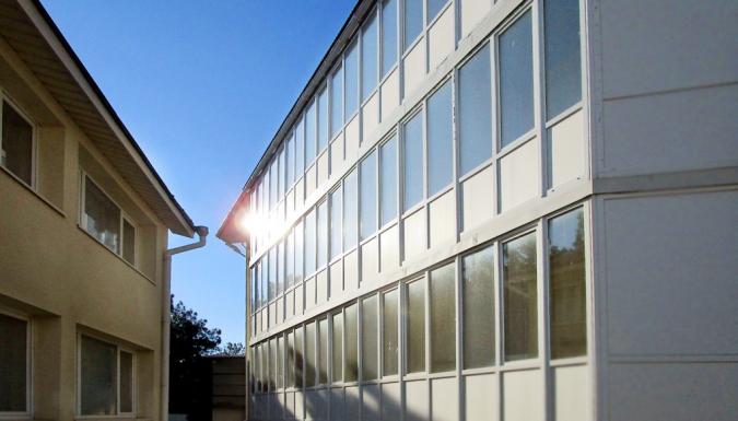 4-этажный корпус находится в тени великолепных судакских сосен, в 250 метрах от моря, рядом с медицинским центром. С северной стороны расположены 2-местные 1-комнатные номера, с южной – 1-местные 1-комнатные номера.