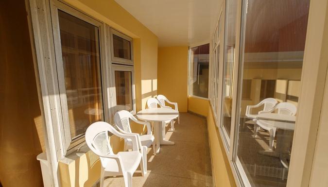 2-местный 2-комнатный номер (макс. 2+2 чел., 18 кв. м, телевизор, кондиционер, душ/ванна, холодильник, телефон, 1-спальные/ 2-спальная кровать, туалет, лоджия со стеклопакетами на два номера). Доп. место - 1,5-спальный диван, предоставляется для одного взрослого или двух детей.