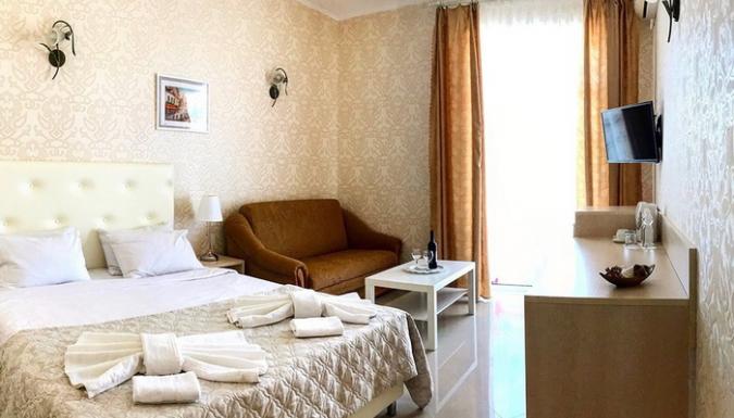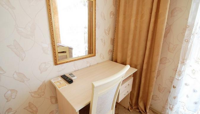 2-местный 1-комнатный стандарт (макс. 2+1 чел., 20 кв. м, Wi-Fi, телевизор, кондиционер, душ, холодильник, балкон, электрочайник, сейф, 2-спальная кровать, набор посуды, туалет). Доп. место - диван, может быть установлен без ограничения по возрасту.