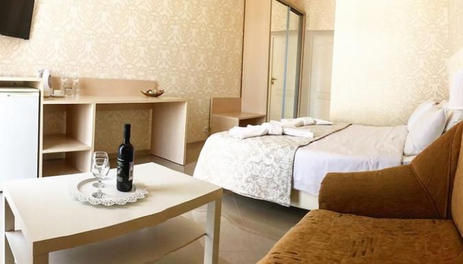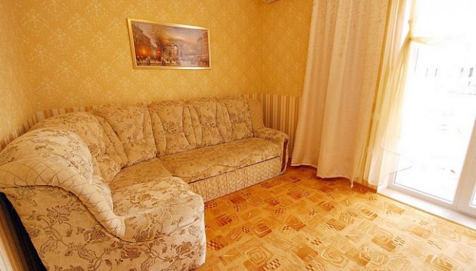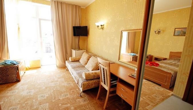 2-местный 1-комнатный люкс (макс. 2+2 чел., 25 кв. м, Wi-Fi, телевизор, кондиционер, душ, холодильник, балкон, электрочайник, сейф, 1-спальные/ 2-спальная кровать, набор посуды, туалет). Доп. место - диван, может быть установлен без ограничения по возрасту.