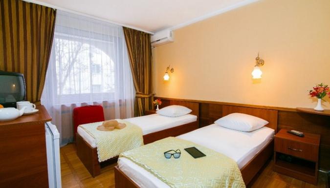 2-местный улучшенный номер (макс. 2+1 чел., 16 кв. м, телевизор, кондиционер, душ, фен, холодильник, балкон, мини-бар, 1-спальные кровати, туалет). Доп. место - еврораскладушка, может быть установлено без ограничения по возрасту.