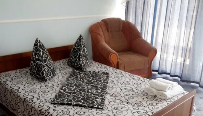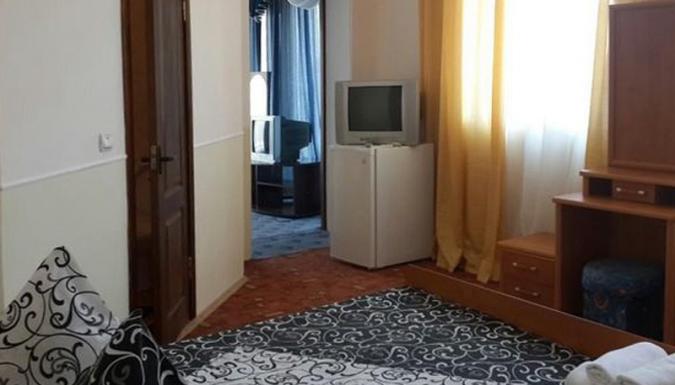 2-местный 2-комнатный номер с балконом (макс. 2+2 чел., 30-35 кв. м, телевизор, кондиционер, душ, холодильник, балкон, электрочайник, СВЧ печь, 2-спальная кровать, туалет). Доп. место - раскладной 2-спальный диван, может быть предоставлен без ограничения по возрасту.