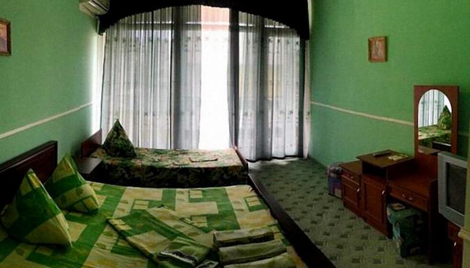 4-местный 2-комнатный номер на 2 этаже (макс. 4 чел., 28-30 кв. м, телевизор, кондиционер, душ, холодильник, балкон, электрочайник, 1-спальные/ 2-спальная кровать, туалет, вид на море, есть межкомнатная дверь).