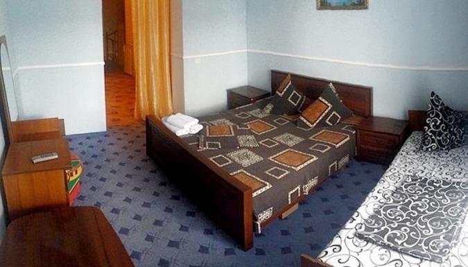 4-местный 3-комнатный номер на 3 этаже (макс. 4 чел., 45 кв. м, телевизор, кондиционер, душ, холодильник, электрочайник, СВЧ печь, 1-спальные/ 2-спальная кровать, туалет).