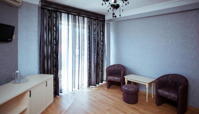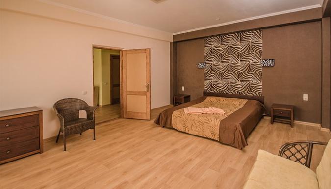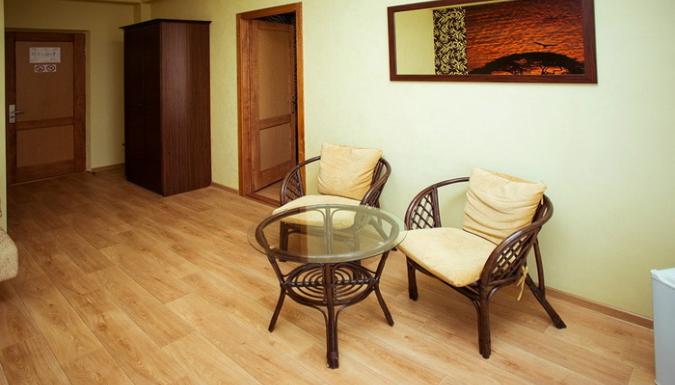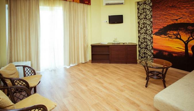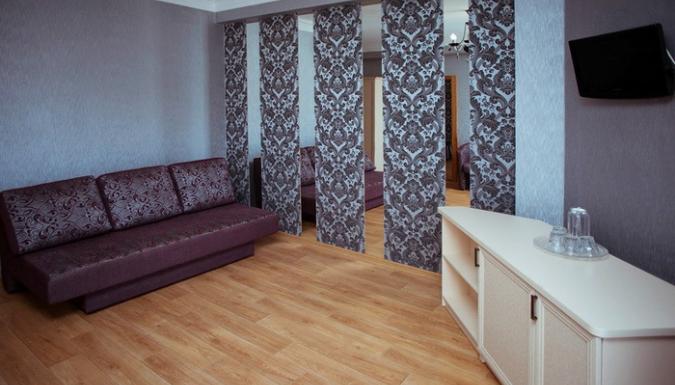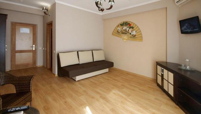 4-местный 2-комнатный семейный номер (макс. 4 чел., 40 кв. м, телевизор, сплит-система, душ, балкон, сейф, 2-спальная кровать, диван, мини-холодильник, туалет).